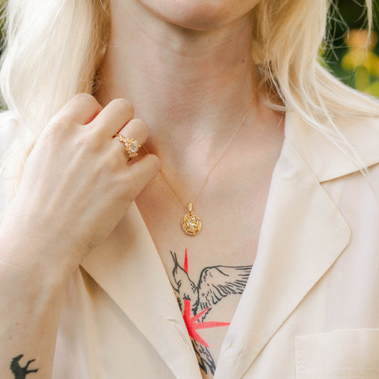 14K gold diamond nest necklace